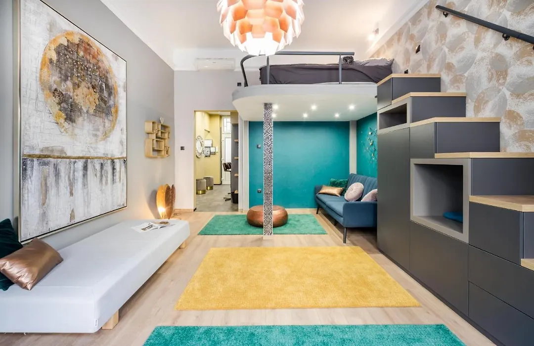 Das 42 m² große Luxury Pilvax Studio Budapest befindet sich im Herzen von Budapest, nur 7 Minuten zu Fuß von der Synagoge in der Dohánystraße entfernt.